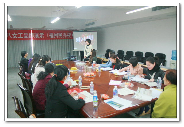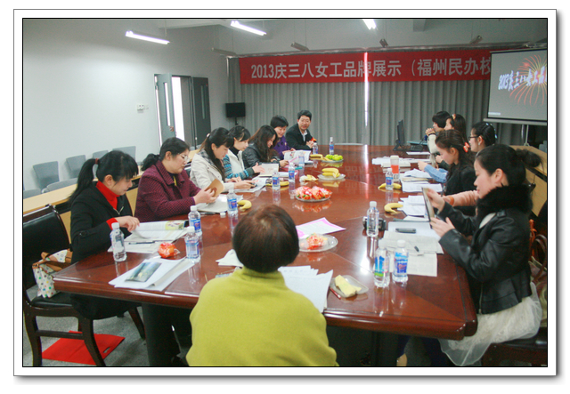 为庆祝“三·八国际妇女节”,根据市教育工会的安排,2013年3月6日上午我校女工委负责组织开展了民办校片区的“庆三八女工品牌展示比赛”活动。13所学校的女工主任到会观摩,参加展示活动的有文博中学、华伦中学、阳光国际学校等。比赛中,为反映女工工作、学习、生活,各校围绕幸福教育、打造自身文化品牌、提升女工业务素质、维护女工权益等,制作了图文并茂、绘声绘色、异彩纷呈的PPT。经过评选,推选出三所学校参加第二分阶段市级决赛的展示活动。与会的女工委员表示,根据民办校的不同办学机制,以后要加强各校之间交流学习,推进女工活动的开展。