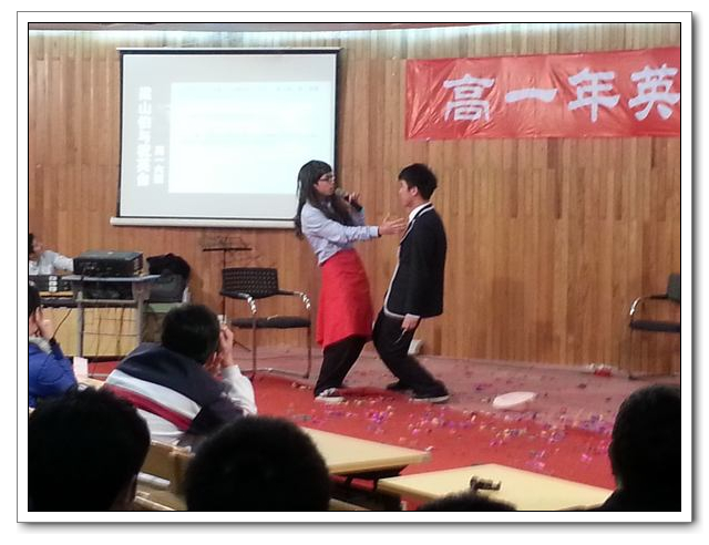 2013年3月29日高一年段英语组组织年段同学们进行了英语话剧比赛。英语话剧表演有着悠久的历史,它给我们的校园生活增添了不少的乐趣,同时它也有助于提高学生英语口语水平,锻炼胆量,极大地激发大家学习英语的兴趣。本次比赛共有八个班参加,每个参赛班级都为了本次的比赛精心的排练,最终大家的付出与成果是成正比的,参赛队员在台上尽情地发挥,丰富的想象力一次次给同学带来不同的惊喜。一班的《唐白虎点秋香》、五班的《猪八戒之嘻哈穿越》、六班的《梁山伯与祝英台》、四班的《白雪公主》都新奇大胆,赢得一阵阵掌声,三班的《花木兰》、二班的《百万英镑》、七班的《麦琪的礼物、》八班的《迷失的杰玛》的经典剧本,带我们重温了历史的奇妙,这次异彩纷呈的比赛让同学们获益良多。