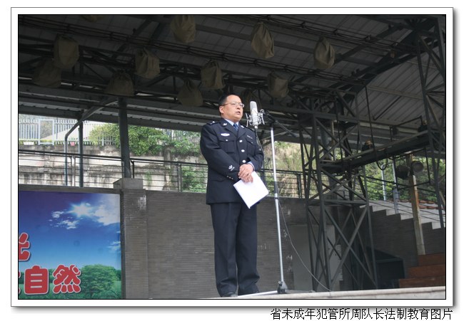 3、省未成年犯管所周队长给全体同学做未成年犯罪法制教育