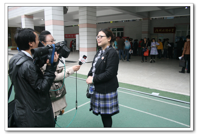 4月21日上午,我校招生办参加市教育局统一举办设在群众路小学的初招咨询会,俞继圣校长、朱之琳常务副校长到会接受家长的咨询,现场报名我校小学毕业生络绎不绝。朱校长接受了福建电视台教育频道记者的现场采访。
