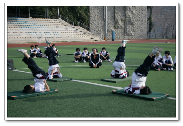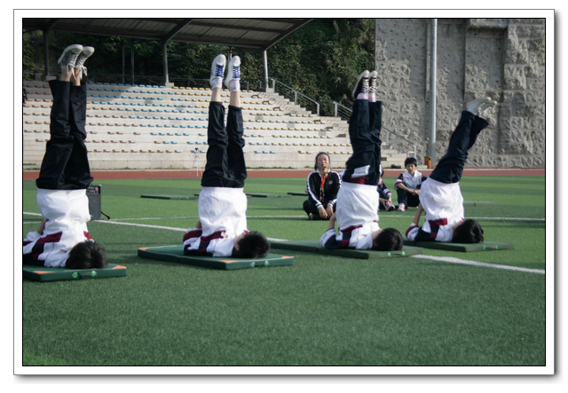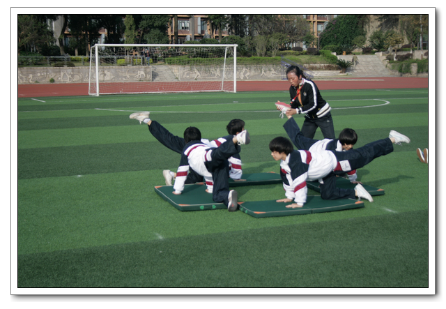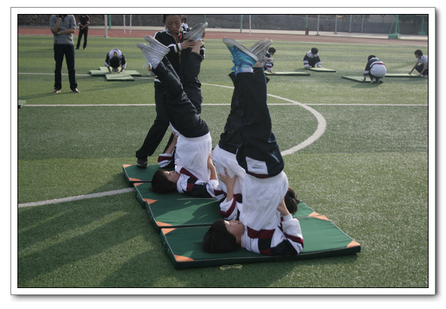 根据教育部体艺司《关于举办第五届全国中小学体育教学观摩展示活动的通知》(教体艺司函 [2011] 40号)的要求,我校认真组织并参与 2012年福建省中小学新课程体育学科优质课的评比。经组织专家严格评审,我校体育组朱光虹老师的课例《肩肘倒立》(指导老师蔡烽杰),被评为“初中自选教学内容组”一等奖。
