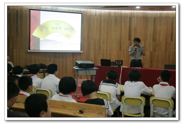 2013年5月20日星期一下午第三节,我校初一年段在一楼会议中心进行了名为“品味经典,沐浴书香”读书知识竞赛活动。初一年段八个班级各派出了两名同学参加抢答活动,由图书馆老师担任主持,初一二班、四班、六班、八班的老师担任评委。