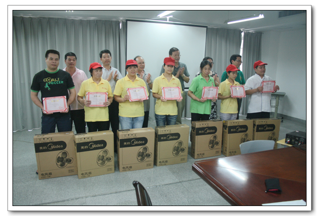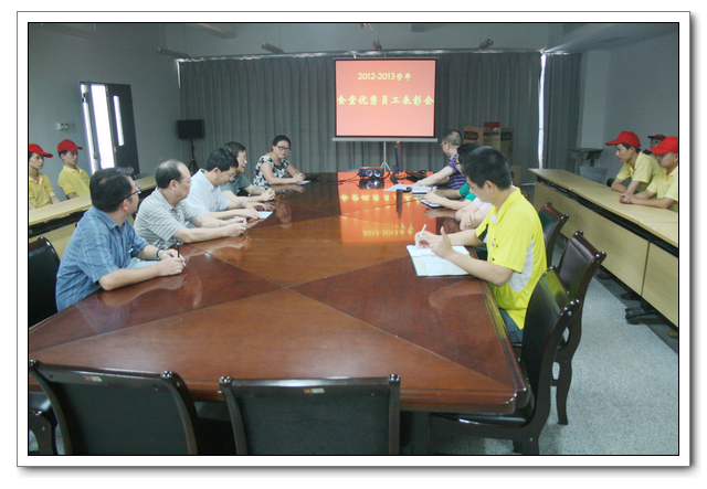 学校两个食堂现有员工60多位,往年,外聘的食堂员工管理都是归口给经营者。近年,学校食堂在所有员工的努力下,学生对食堂的满意度评价逐年提高,学校食堂也于4月29日被福州市委文明办、市直机关工委,市教育局、卫生局等评为“文明餐桌行动示范单位”。为了推进“文明餐桌活动”的开展,校工会、德育处、后勤处组织开展了两个食堂民主推荐评选“2012/2013学年度‘优秀员工’”活动,并于6月25日下午组织召开表彰大会,四位校领导及食堂负责人分别给七位优秀食堂员工颁发证书和奖品。俞校长勉励员工一定在要认真办好学校食堂,做好全体师生生活服务的后勤保障,同时也感谢所有员工的辛勤劳动!