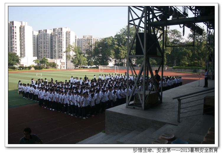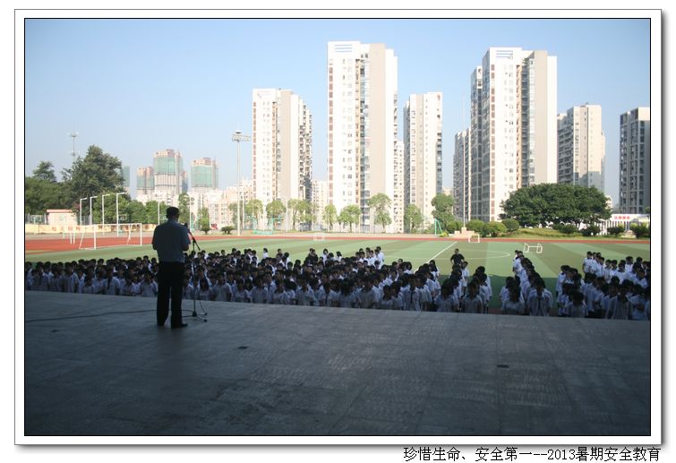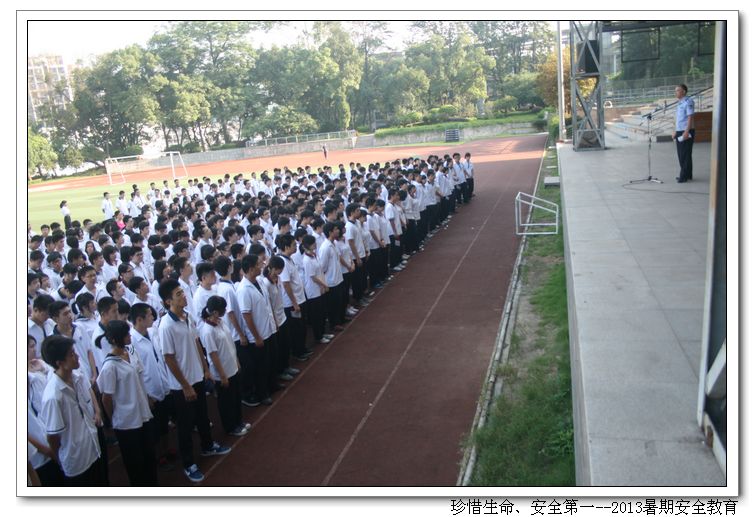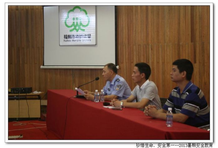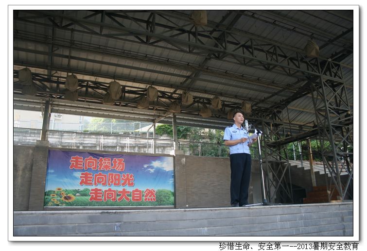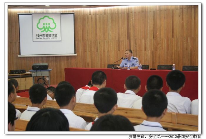 校法制辅导员、洪山派出所胡丛荣警官分别在2013年6月27日和7月4日为我校初一、初二、高一、高二学生做“珍爱生命、安全第一”为主题的法制安全讲座。