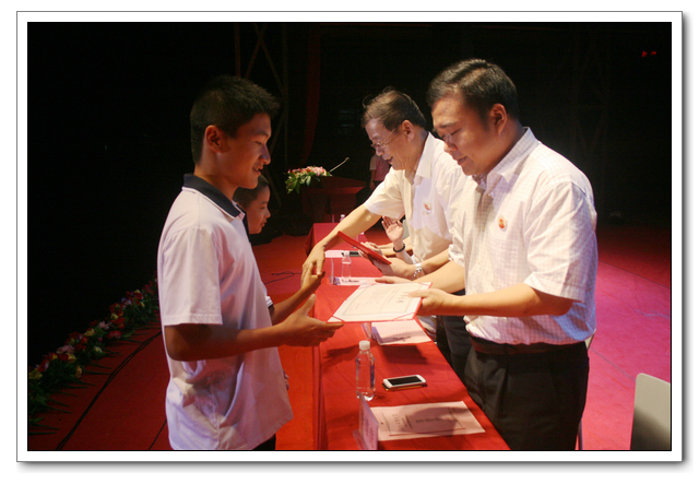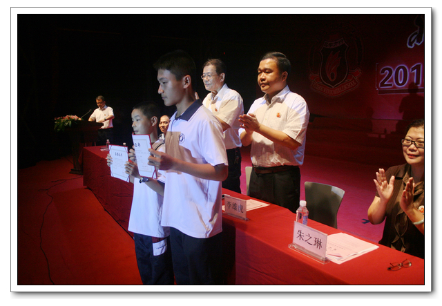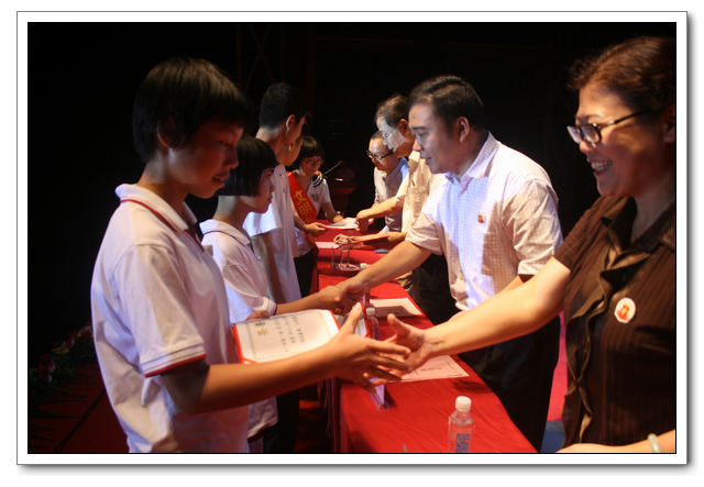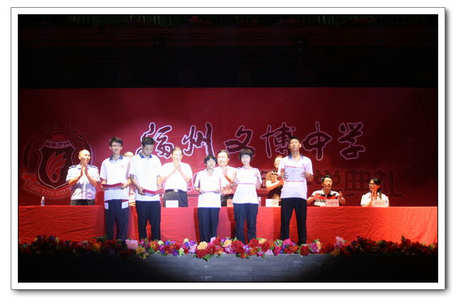 学校对2013年入读我校的初、高一近百名优秀生颁发入学奖励,对2012—2013学年成绩优异的同学颁发了学年奖学金。福建金帝集团总裁李雄虎先生,福建仁文建设有限公司总经理陆浩先生和福建仁文建设有限公司的领导们,莅临典礼,颁发奖励。