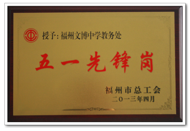 近日,在由福州市总工会组织开展的创建“工人先锋号”、“五一先锋岗”活动中,我校教务处喜获福州市“五一先锋岗”荣誉称号。