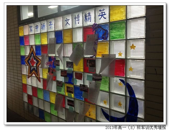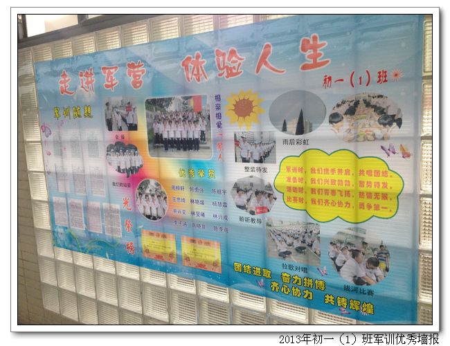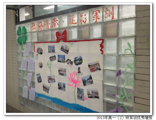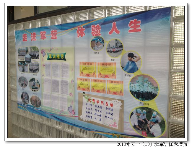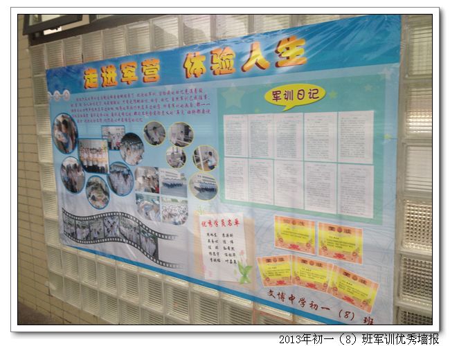 1、军训墙报展评。期初,初一高一新生军训已圆满完成。为此,学校还组织开展了以“走进军营体验人生”为主题的墙报评比活动。活动中,同学们一起动手、共同享受创作的乐趣和成功的喜悦,增强了学生的集体荣誉感和团队合作精神。同时,通过活动的开展,美化了教室和校园,丰富了走廊文化。