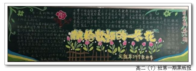 2、黑板报评比。根据学校制定的新学期《班级黑板报安排表》,各班以“庆祝第29个教师节”为主题,完成了第一期的黑板报;学校组织了评选。