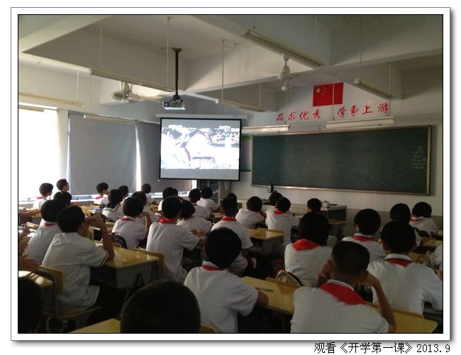 期初,德育处组织全校学生,在班会课上观看《开学第一课》视频。
