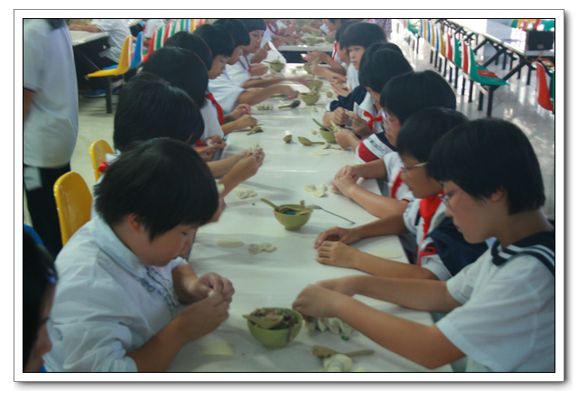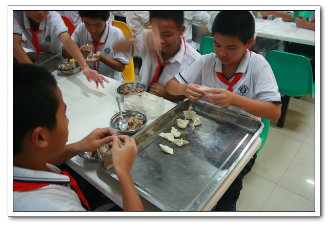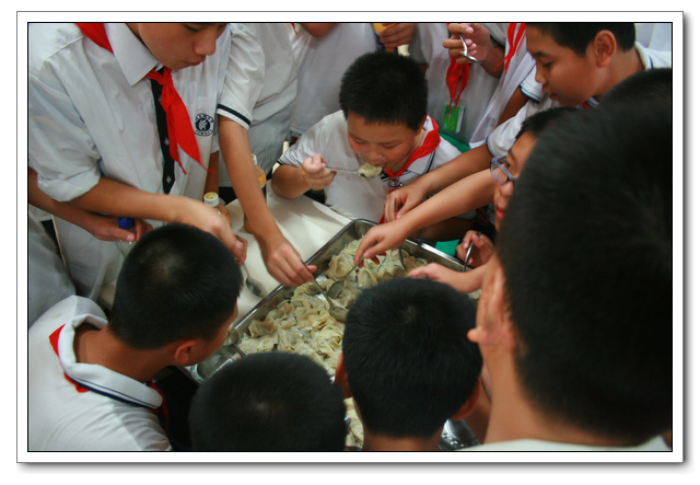 集会结束后各班分组参加趣味盎然的包饺子活动。在班主任的带领下,大家一起动手,最后品尝自己的劳动成果。全体少先队员度过了一个非常有意义的少先队建队纪念日。