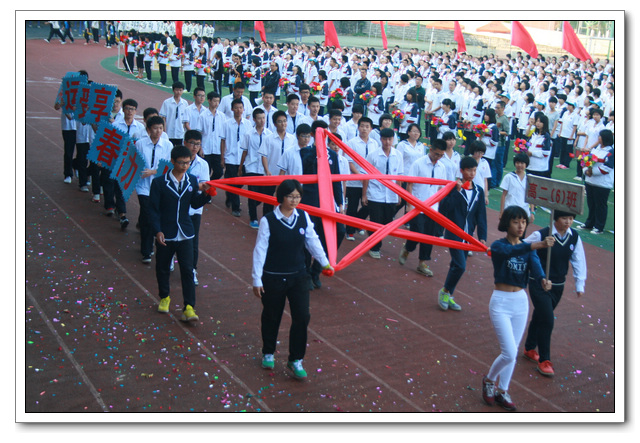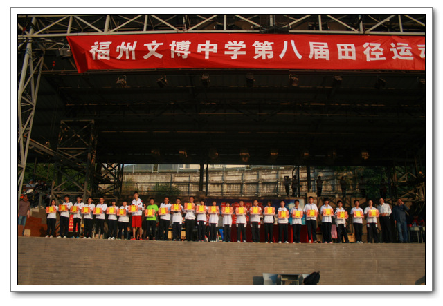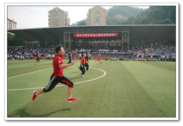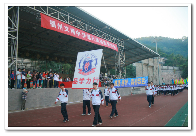 10月24日、25日,我校隆重举办校第八届运动会。本届运动会上,全校师生近4000人次参加比赛, 可以说是一次精彩、成功的盛会。在入场式上,各个年段组织严密,秩序井然。整齐的队列、矫健的步伐、雄壮的口号,充满创意的行进间活动,尽情地挥洒青春和激情;在赛场上,运动健儿龙腾虎跃,顽强拼搏,力争上游,赛出水平,赛出风格,共有16项打破了校运会的记录,令人振奋;在比赛中,裁判员、工作人员公平公正,恪尽职守,严格裁判,保证了大会各赛事的顺利进行;在宣传阵地上,各个班级捷报快递、佳作频传,活跃了赛场氛围,丰富了校园文化。大会宣传组共收到了稿件5049件,是历年来数量较多、质量较好的一次;这里还值得一提的是,许多班级组织同学,穿梭于运动场各个角落,清扫卫生,做好保洁,体现了同学们良好的素质修养。本次运动会充分展示了文博中学素质教育的丰硕成果,充分展示了文博师生朝气蓬勃的精神风貌。
