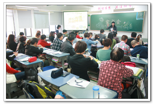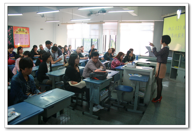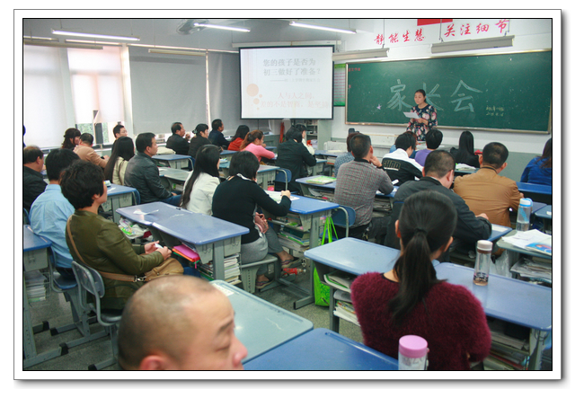 年段集中后,是分班开家长会,八个班的班主任对期中考优秀学生、有进步的学生和上半期表现好的同学进行了表彰,对班级情况向家长做了汇报。各科教师也向家长汇报了这半学期的教学情况,并对如何学好各科做了具体的指导。