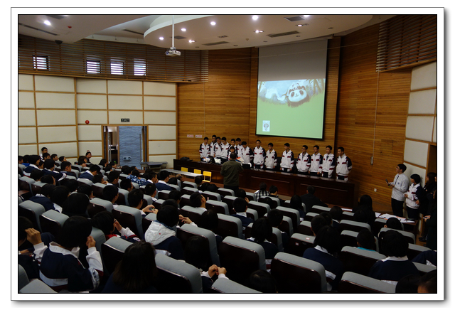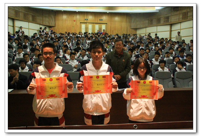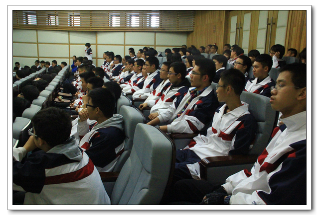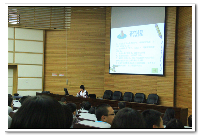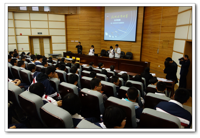 2013.11.28下午3、4节,我校俞继圣校长、朱之琳副校长、周啸翔副校长、余光亮主任及高一年段全体师生会聚在校会议中心二楼,召开研究性学习优秀课题组结题报告。