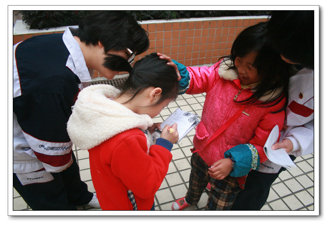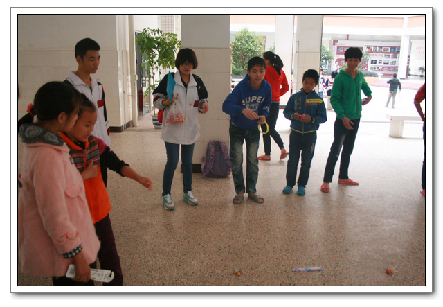 12月7日上午,我校团委组织两委成员及第七届两代会候选人、青年志愿者协会的同学前往聋哑学校开展献爱心活动。天气宜人,两校的同学们共同度过了一段令人难忘的快乐时光, “套圈送礼品”、“篮球比赛”、“乒乓球投准”等小游戏虽然简单但是很快就让同学们彼此熟悉起来,活动的同时不会手语的志愿者利用笔和纸积极交流,短短的两个小时同学们就打成一片,气氛十分融洽,小小的活动既传递了温暖,也建立了友谊。一起进行篮球赛的志愿者们留下了他们的联系方法,同时感慨地说道:他们是一群真诚待人、值得交往的好朋友!