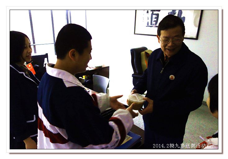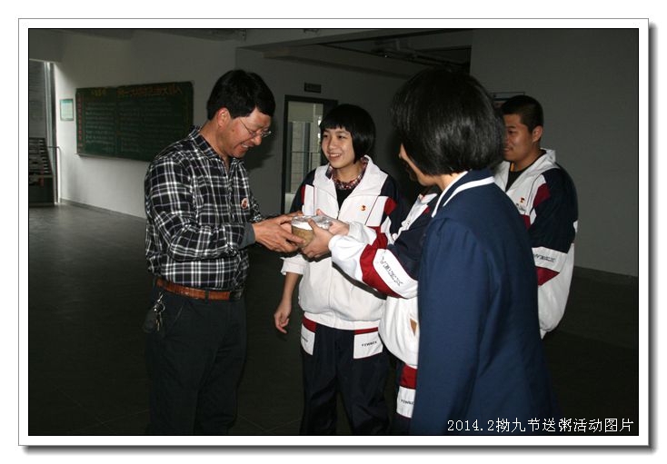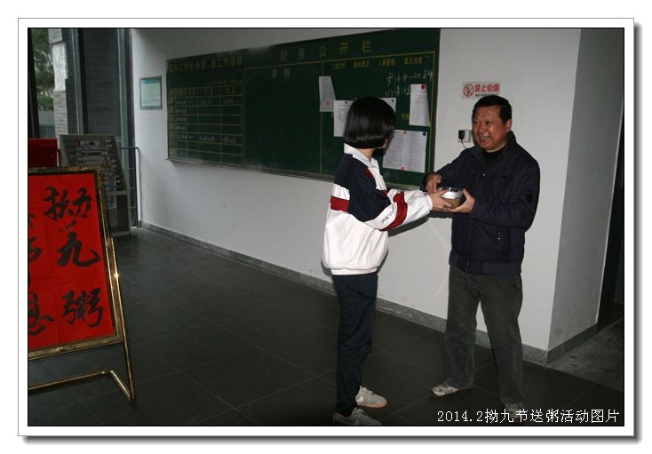 2月28日,团委学生会、生管组老师、校学生志愿者及食堂工作人员给全体老师们送上了一份浓浓的拗九粥。