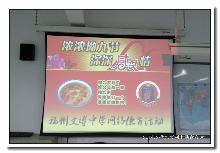 此外德育处还组织全体师生观看《感动中国2013十大人物颁奖晚会》。通过开展不同形式的活动,让同学们感受到尊老孝亲是一种美德,更是一种道德责任。让关爱成为一种习惯,做一个文明有礼、友爱友善的文博人。