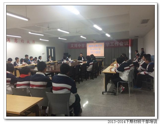 为培养和打造一支品德优良、工作能力强的学生干部队伍,学校德育处、后勤处、美术组于期初举办了学生干部培训活动。活动共举办四场讲座,培训对象是各班的两委干部、宣传委员、多媒体管理员和督导队员,共计有150多名学生干部参加。