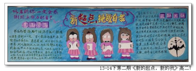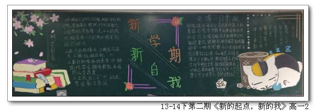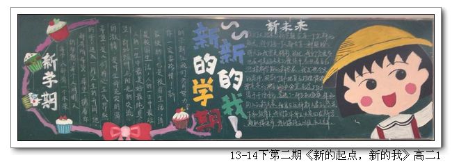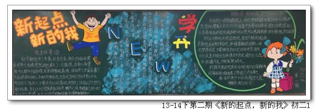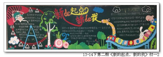 根据学校制定的新学期《班级黑板报安排表》,各班以“新的起点,新的我”为主题,完成了第一期的黑板报;学校组织了评选。