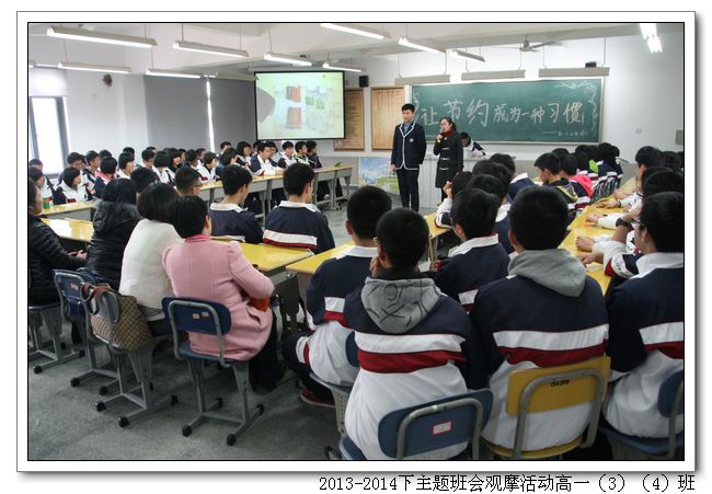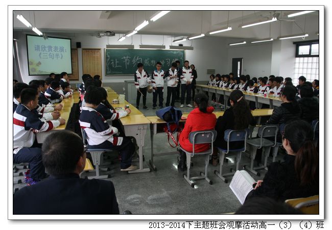 高一(3)班、高一(4)班联办的主题班会 “让节约成为一种习惯”。由邱琼老师和一名男同学搭配主持,形式新颖;班会中有令人感动的节俭故事,有令人反思的小品《最后一滴水》,也有现场采访家长分享家庭生活中的节约小窍门……内容丰富形式多样的主题班会教会我们勤俭节约不仅适用于金钱、水、电、粮食等问题更要学会明智地使用一个人的时间、精力,养成精打细算的生活习惯。