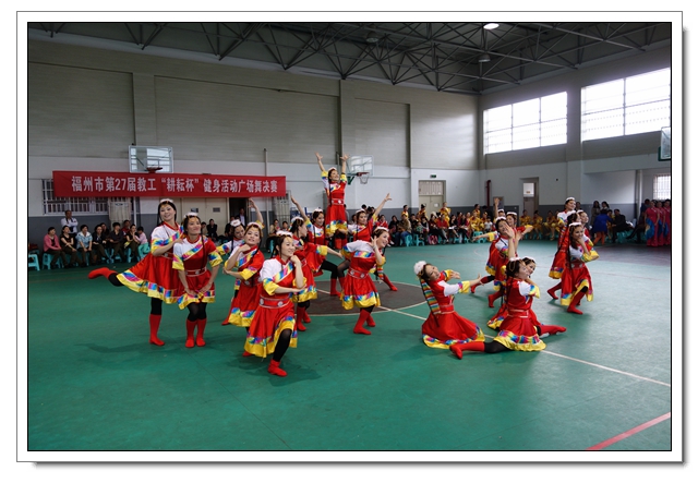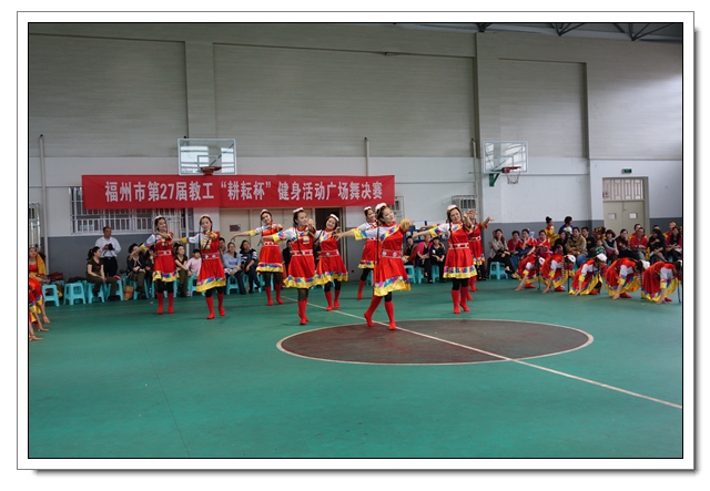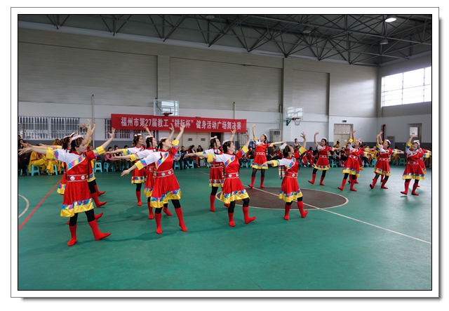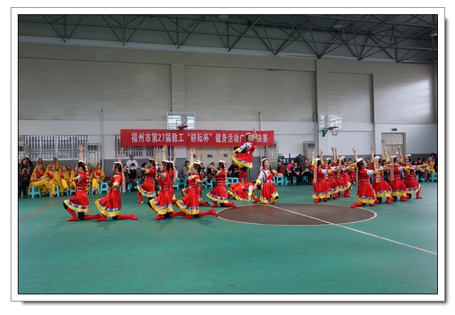 4月26日下午,福州市教工第27届“耕耘杯”广场舞决赛在福州二中举行,共有来自我市教育系统23所大中小学校和幼儿园代表队参加。本次广场舞比赛分初赛和决赛两个阶段进行,采取分片预赛,从3月开始起共有7个片的50多所学校参赛,最后选拔出23个参赛队进入全市决赛,评选出一等奖7个、二等奖8个、三等奖8个。市委教育工委委员、市教育工会主席吴强莅临现场指导并为获奖学校颁奖。我校首次组队参加这个项目的比赛,以8.63的高分获得二等奖。