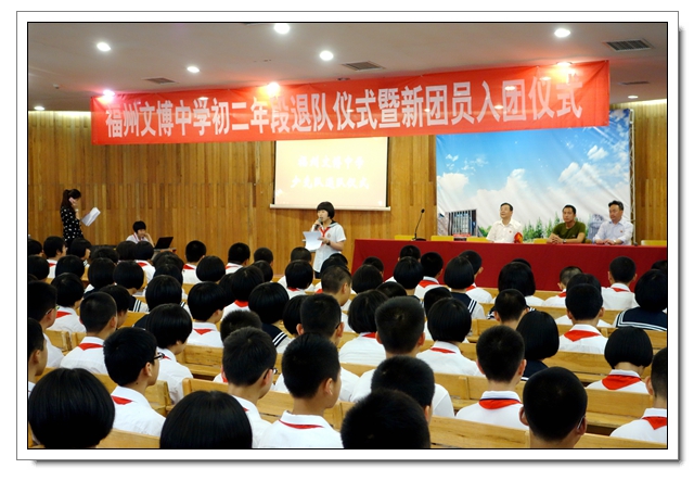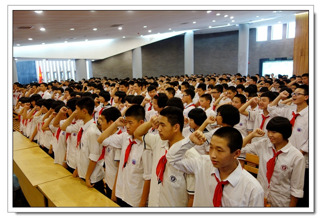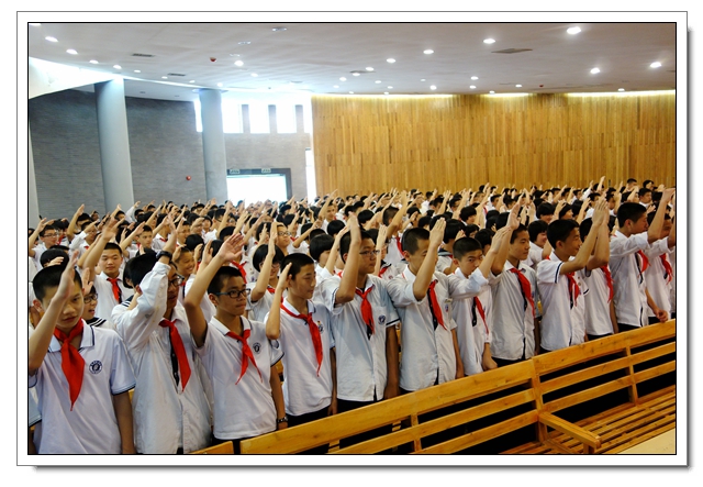 5月27日下午,初二年段全体同学集中在校会议中心,隆重召开 “感恩·成长·责任”初二年段少先队退队暨新团员入团仪式。活动中伴随着少先队呼号声同学们将伴随了多年的红领巾纷纷摘下,这标志着他们已不再是稚嫩的孩童,他们已经由稚气未脱的雏鹰成长成了展翅高飞的雄鹰!接下来团委陈锦霞老师带领62位新团员在团旗下进行了庄严的的入团宣誓!活动最后朱副校长发表总结讲话,激励孩子们要发奋图强,懂得感恩。