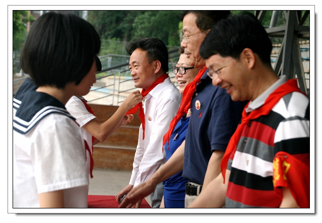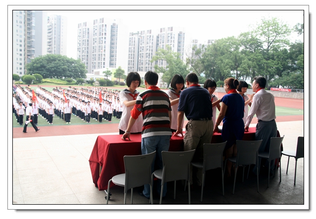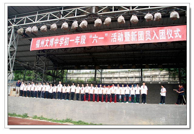 5月28日下午,初一年段在校团委和年段的组织下,在操场隆重召开了“红领巾相约中国梦”庆六一的主题队会活动。队会分为新团员入团宣誓和诵读经典两个环节,我校俞校长、朱副校长、周副校长参加了队会。段长张林云老师宣布了29位品学兼优的新团员名单,团委书记张锦杉老师带领新团员们面向共青团团旗进行了庄严的宣誓。最后俞校长祝贺少先队员们节日快乐,同时对初一年段的同学们提出了“优化习惯,认真学习,广泛阅读,锻炼能力”的学习要求。