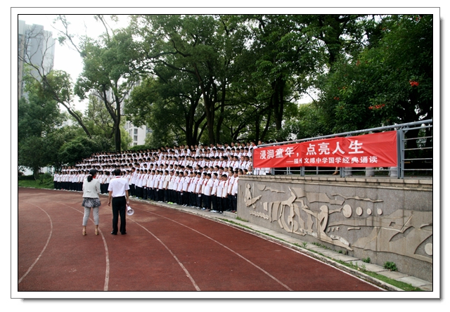 活动的第二个环节是诵读经典,全年段分为两大组齐声朗诵《弟子规》和《三字经》,最后由各班选出一名学生进行个人的朗诵展示。通过此次读书活动提高了我校少先队员们的文化艺术修养,同时也激发了广大师生诵读经典的热情。