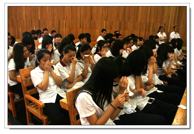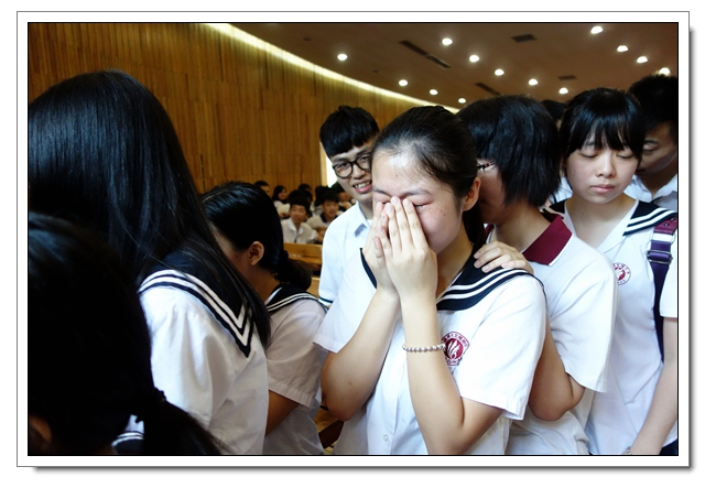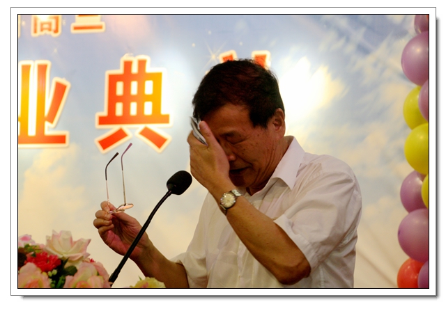 俞校长擦拭泪水