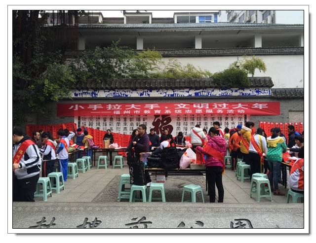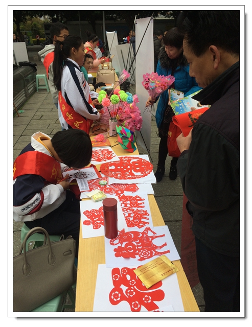 根据《共青团福州市教育局委员会关于开展“手拉手,文明路上一起走”主题志愿者服务活动的通知》精神,我校与市直院校城西片区学校于2015年1月31日共同开展志愿者服务活动。活动中各校学生各显身手,写春联;义务剪发;制作手工花等等。我校初二(6)班乐海燕同学也在现场展示了剪纸的技能,并无偿赠送给辖区居民。