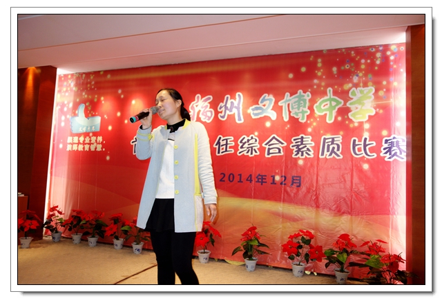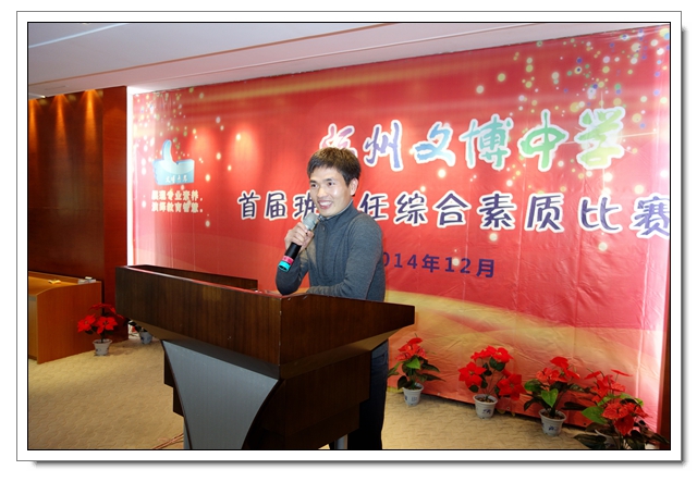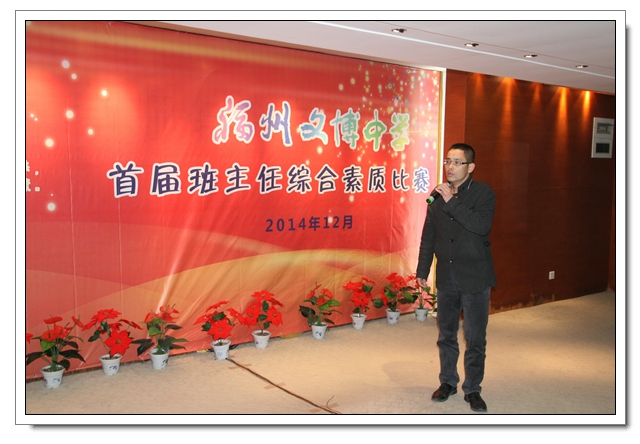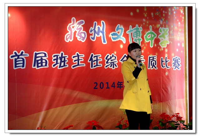 自2014年12月1日下午班主任例会的参赛报名动员开始,至2015年3月23日下午举办的“才艺展示”比赛活动结束,历时近四个月,有20位班主任或年段长参加了以“展现专业素养,演绎教育智慧”为主题的“福州文博中学首届班主任素质大赛”,终于落下帷幕,圆满完成各项赛事。