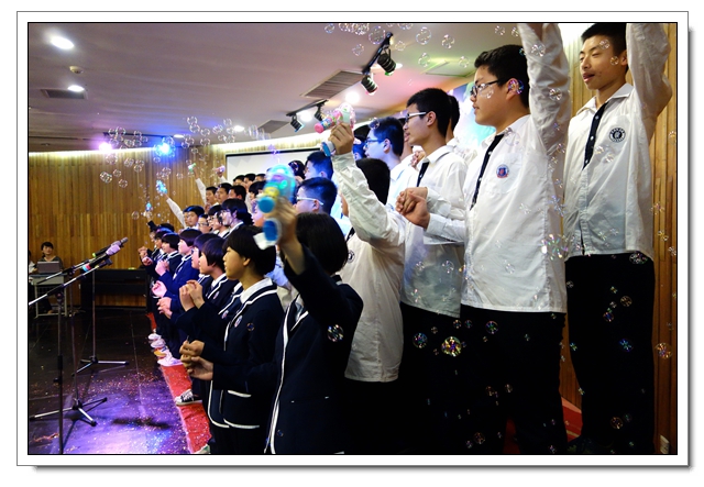 四个年段必唱曲目分别是《中学时代》、《共青团员之歌》、《光荣与梦想》、《中国军魂》。各班在动作编排、服装设计、歌曲演唱方面都很用心,给人以视觉和听觉的享受。值得一提的是,李芸芸、龙连城、陈晓宁三位老师与同学们同台演唱。高一2班的同学们借一首《父亲》向班主任谢成鋆表达了谢意,并敬谢了鲜花。美妙的音符承载着学子们的梦想,回荡在会议中心,也暖暖地流进你我的心中。