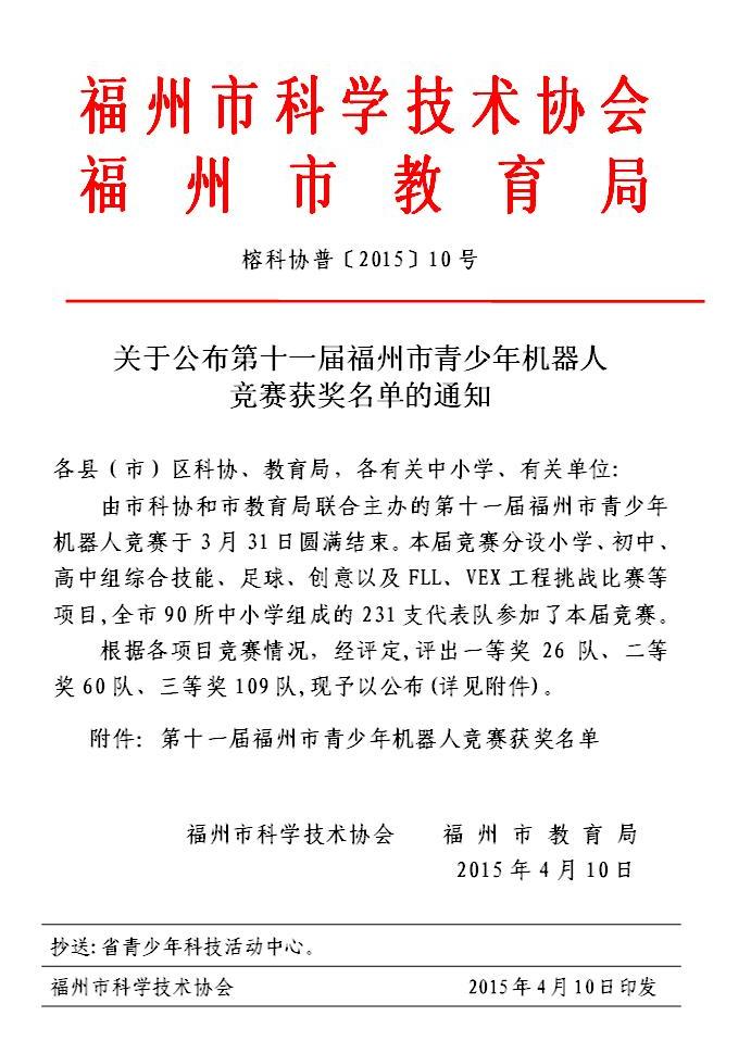 【喜报】我校学生参加2015年机器人竞赛获市一等奖