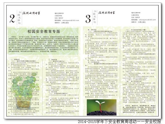 3月30日,是“全国第20个中小学生安全教育日”,3月30日至4月5日是“福建省第八个中小学生安全教育周”。我校以此为契机,围绕“我安全、我健康、我快乐”这一主题开展系列活动,通过启动仪式、安全疏散演练、国旗下讲话、安全图片展、黑板报评比、安全手抄报比赛、安全专题校报等开展不同形式的宣传教育活动,来提高学生的安全意识。
