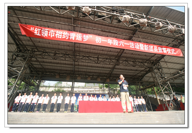 6月1日下午,初一年段在校团委少先队和年段的组织下,在操场隆重召开了“红领巾相约青运梦”庆六一的主题队会活动。队会分为新团员入团宣誓和迎青运游园活动两个环节,俞校长、周副校长以及各处室领导,年段老师们参加了队会。年段长宋宏伟老师宣布了初一第一批26名新入团名单,少先队总辅导员陈锦霞老师带领他们在团旗下庄严宣誓。最后俞校长对初一年段所有少先队员致以节日的问候,并对初一年段的同学们提出了殷切期望,希望同学们:加强表达能力、交往能力、劳动能力并且主动参与各项活动,发现自己的潜能,今后走上社会能成为社会栋梁。