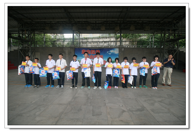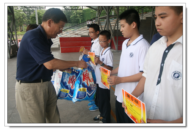 6月23日,课间操时间,俞继圣校长为获得星级宿舍称号的舍长颁发星级奖牌和奖品,学校也为星级宿舍的同学予以张榜表扬。