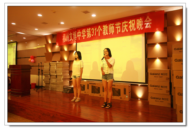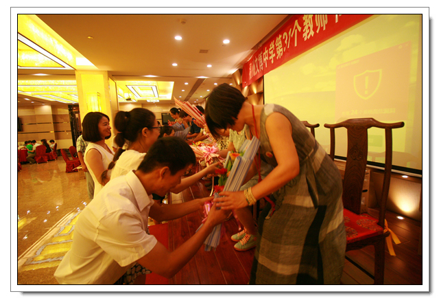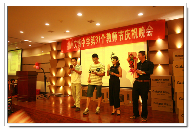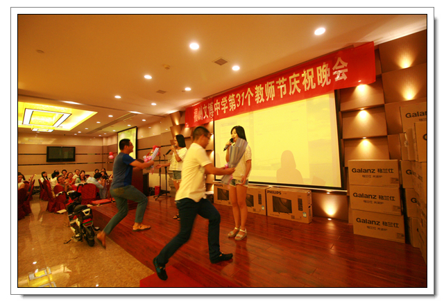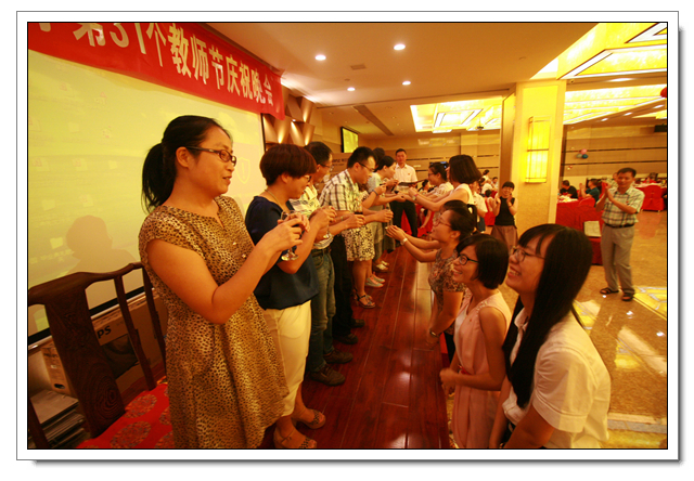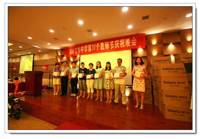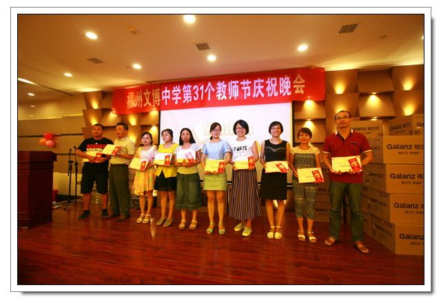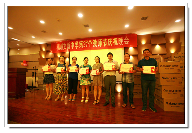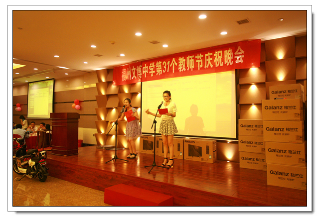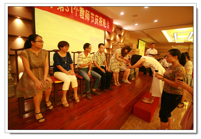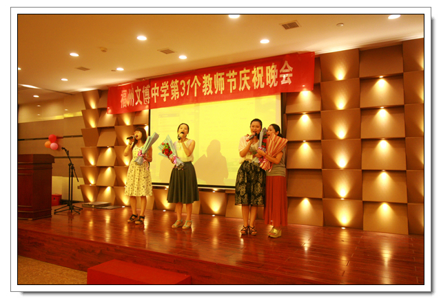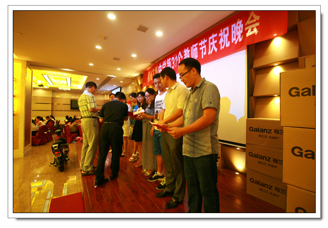 9月11日晚,我校庆祝第三十一个教师节联欢晚会在榕轩酒店宴会厅隆重举行。晚会上进行了颁奖典礼、师徒签字仪式和联欢晚宴等活动。
