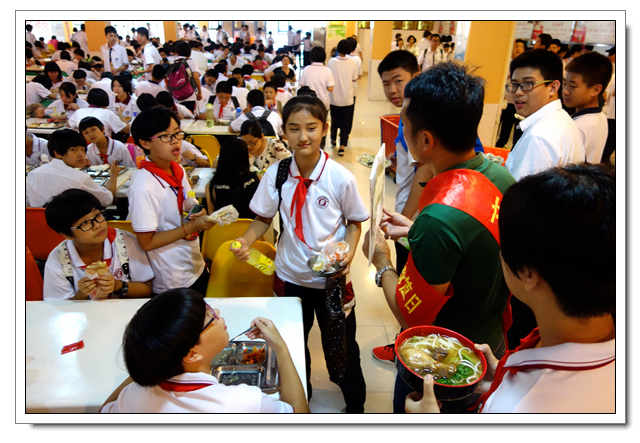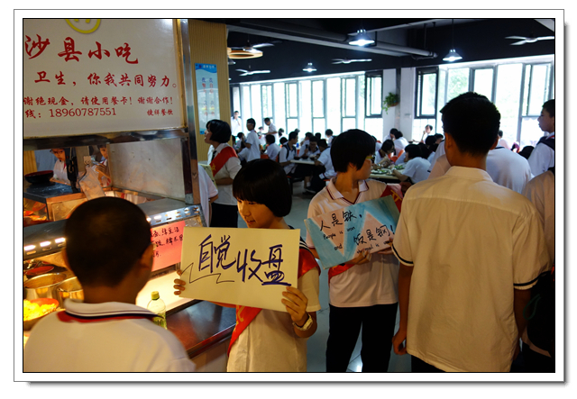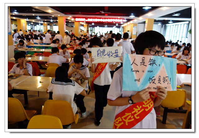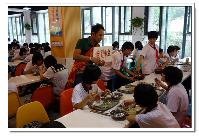 9月17日-9月18日,一场关于文明就餐的劝导活动在文博中学如火如荼地进行着。在校团委的组织下,我校学生会及团委组织部成员担任督导工作人员,佩戴督导绶带及工作证,携带写有“自觉排队”、“珍惜粮食”、“自觉回收餐盘”等字样的宣传牌在食堂进行劝导,提醒就餐师生文明就餐。我们从小就习得“谁知盘中餐,粒粒皆辛苦”的道理,积极养成珍惜粮食的行为习惯。除此之外,在文明就餐的过程中,我们还应该养成自觉遵守纪律,有序排队买饭,做到不拥挤、不插队;同时,珍惜粮食,吃多少打多少,力争做一名“光盘族”;最后,为了保障食堂的卫生与整洁,每位同学应自觉回收餐盘。文明就餐礼仪与每一位文博人都息息相关,为了构建更加和谐的校园就餐文化,我们都应该规范自己的行为习惯,争取做一名文明的文博人!