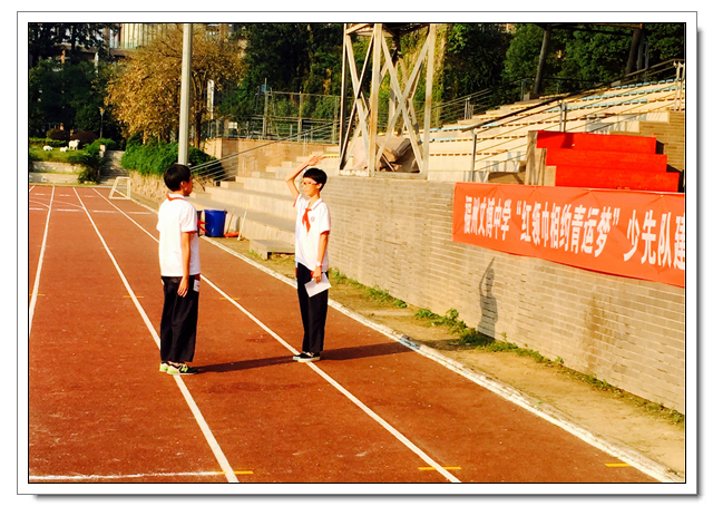 1949年10月13日,诞生了一个光荣的集体——中国少年先锋队。少先队,一个响亮的名字,在走过几十年光辉历程后,迎来了它66岁的生日。活动秩序井然,先举行了隆重的建队日仪式,集会由初一(2)班陈诗婕主持,全体少先队员们齐声高唱《中国少年先锋队队歌》“我们是共产主义接班人……”熟悉的旋律,嘹亮的歌声,振奋了在场的每一位学生,感染了每一位老师。之后在大队辅导员陈锦霞老师的带领下,全体少先队员在队旗下庄严呼号:“时刻准备着!” 初一(9)班邵如缙代表少先队员发表了讲话。团委书记张锦杉老师在发言中也对全体少先队员提出三个要求:1、爱护环境卫生;2、待人有礼貌;3、尊重集体。勉励全体少先队员做到同分更优秀。