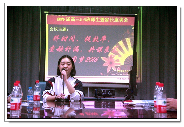 在紧张的高三总复习阶段,为更切实地提高教学效率,我校高三年5、6班全体师生及部分家长,于10月26日下午4:00,会聚于校五楼会议室,召开以“挤时间,提效率;查缺补漏,共谋良策;圆梦2016!”为主题的家校座谈会。