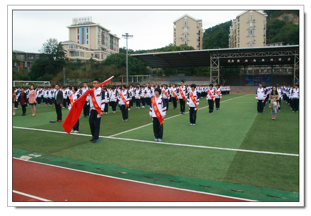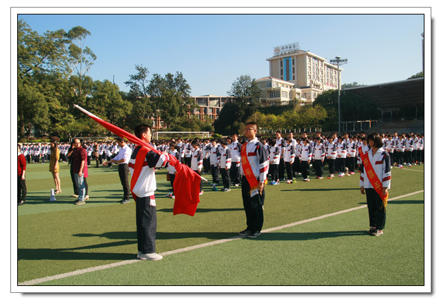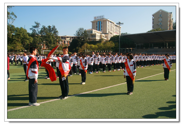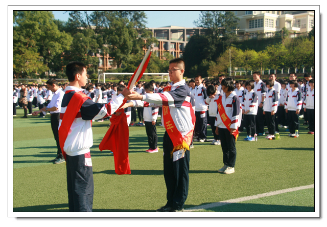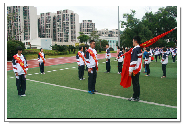 2015年11月23日上午,文博中学在操场举行了国旗护卫队交接仪式,全校师生师生共二千多人参加了本次仪式。