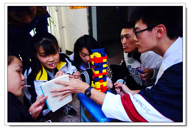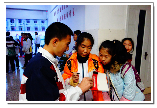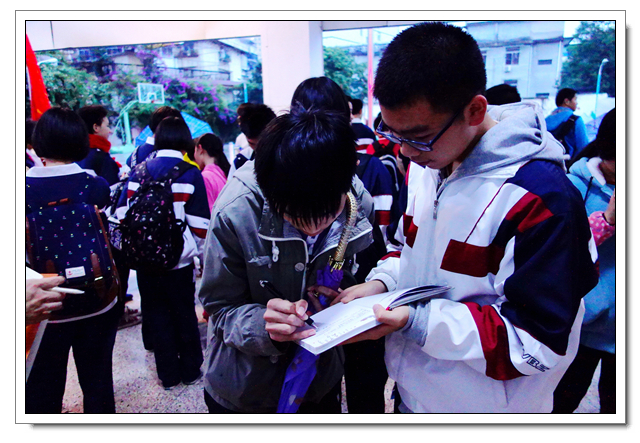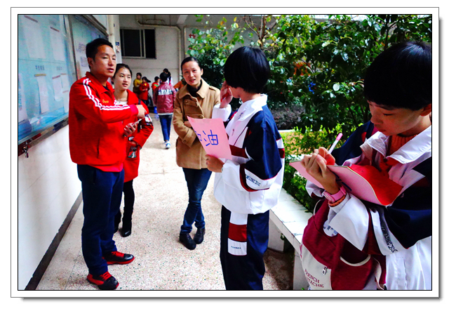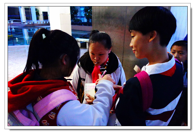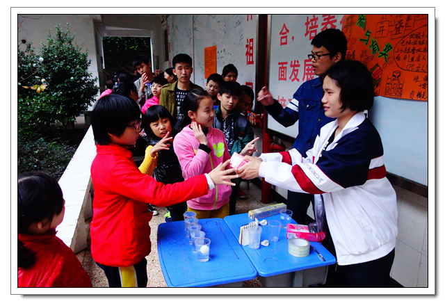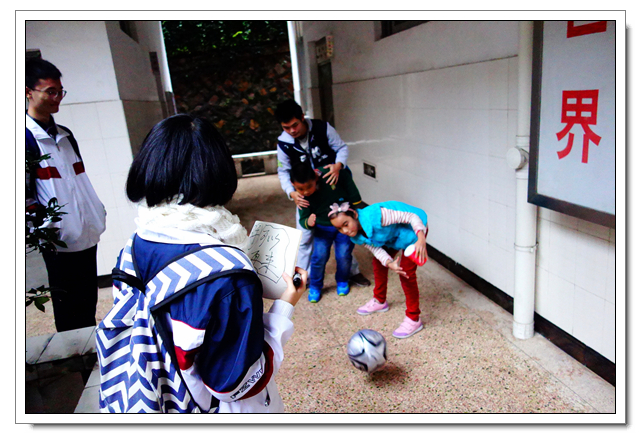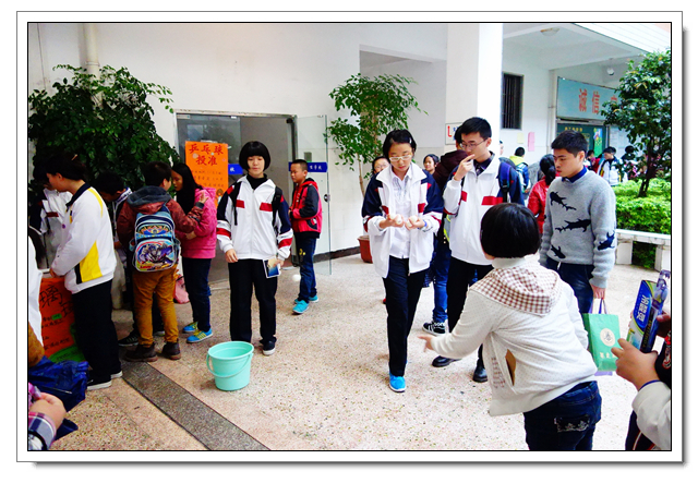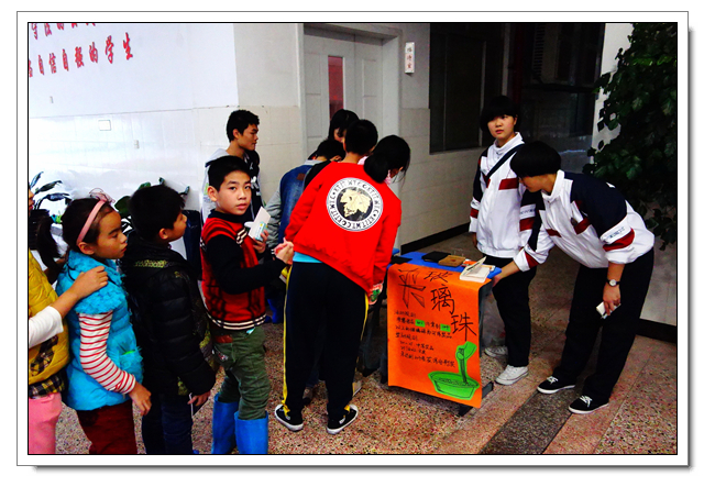 这是文博学生第六年到这里开展爱心活动,志愿者们向孩子们赠送了笔、画纸洗发水、牙膏等小礼物,孩子们见到了文博中学的学生都十分开心,都热情地上前拥抱问好。即使空中雨落纷纷,但也不影响同学们活动的热情, “乒乓球投准”、“纸飞机远航”、“弹珠转移”小游戏持续进行中,一个多小时笑语声绵绵不断。沟通交流上有一些小小困难,志愿者们用事先准备好的纸笔开心地交流着。时间飞逝,爱心在传递,温暖源源不断,友谊的桥梁亦然建起!