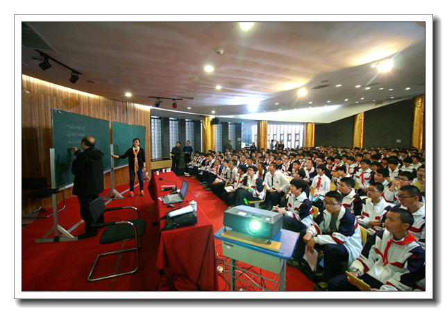 赛前,我校邀约杨学枝老师为本校520名参加竞赛学生进行培训讲座。杨老师深受师生欢迎,讲座期间气氛活跃,学生听讲认真,积极笔记,课后还有不少学生围在老师身边,充分展现出本校学生潜心研究的求学态度。