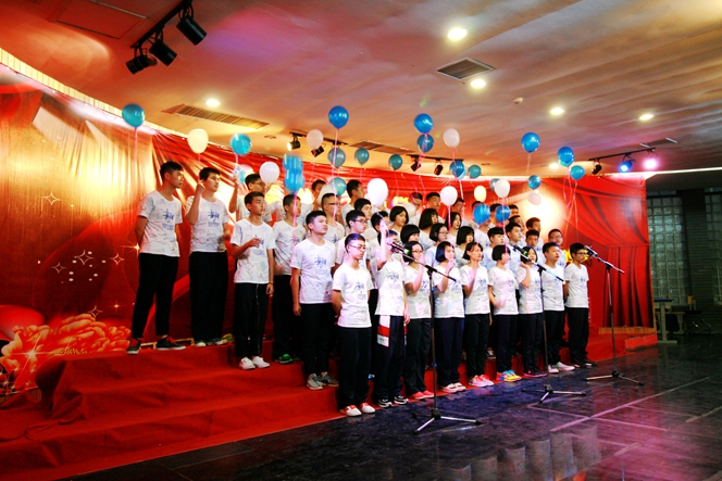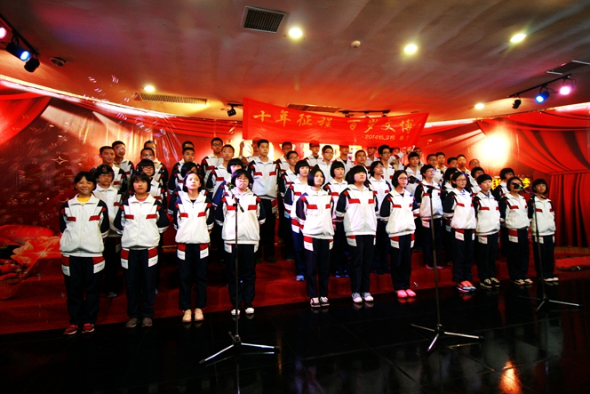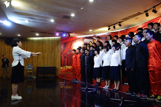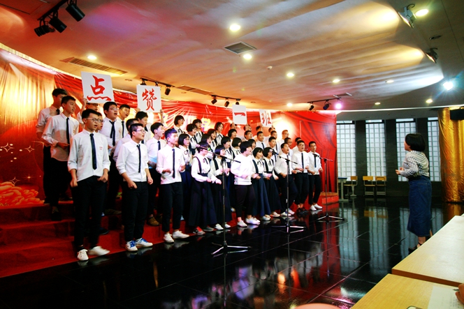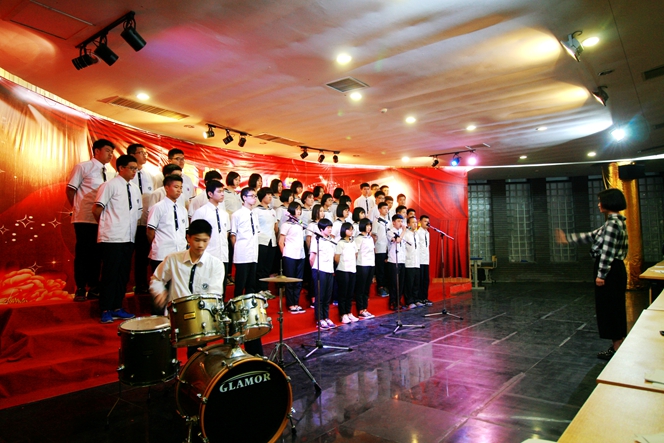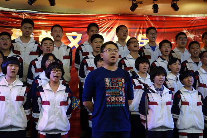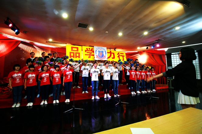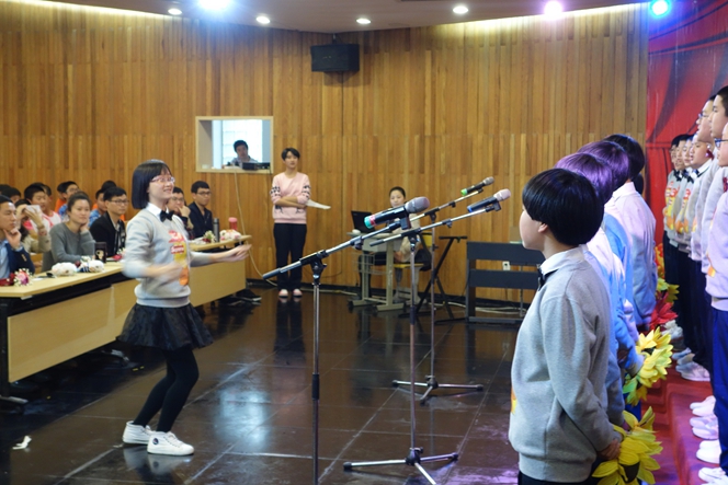 此次比赛,校歌“一路向前”作为各年段必唱曲目,第一次亮相在比赛现场。