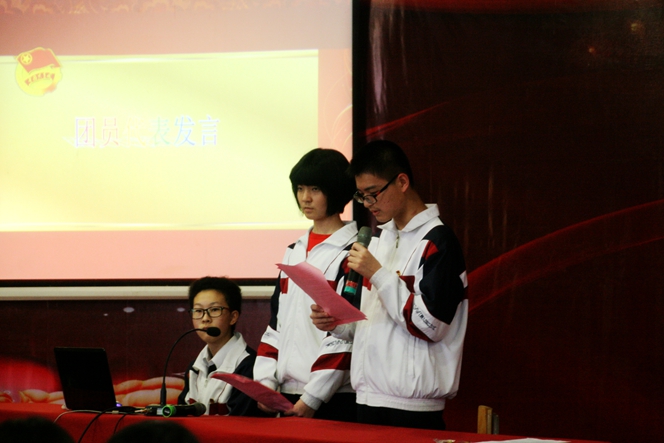最后校团委书记张锦杉老师讲话,他代表团委向新团员表示热烈的祝贺。他强调,共青团是党领导的先进青年组织,是党的助手和后备军,新团员要时刻牢记自己是一名共青团员,要更加努力学习团的基本知识,自觉遵守团的章程,执行团的决议,履行团的义务,发扬共产主义道德风尚,处处维护国家和人民的利益。他希望广大新老团员要严格要求自己,争当优秀团员,为集体争光,用所有的热情投入到共青团中来,在团组织中锻炼才干,提高自身素质。