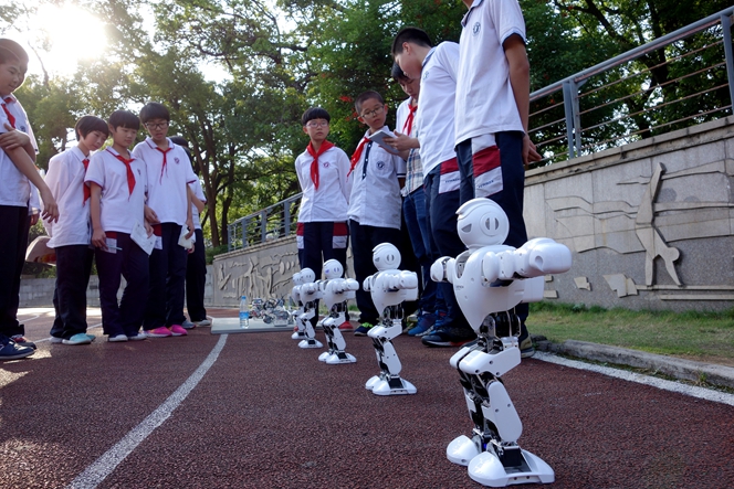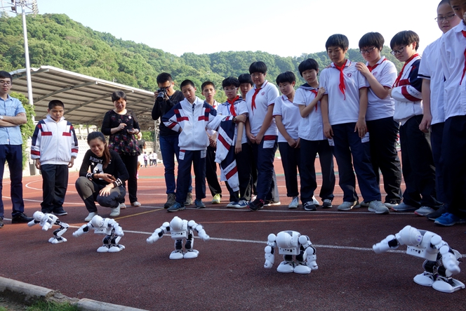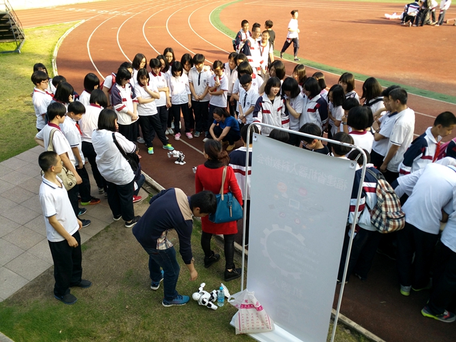 5月12日周四下午第4节,杨为劭、兰长滨、赵燃三位老师在校操场组织七年级的学生进行了航模与机器人作品的集中展示活动。本次展出的航模作品是由杨为劭老师指导的高一研究性学习活动小组设计的飞机模型,而机器人作品是由福建省机器人科教协会的老师们带来的12套机器人设备。同学们对本次展出的航模和机器人作品表现出了浓厚的兴趣,现场活动气氛相当热烈!
