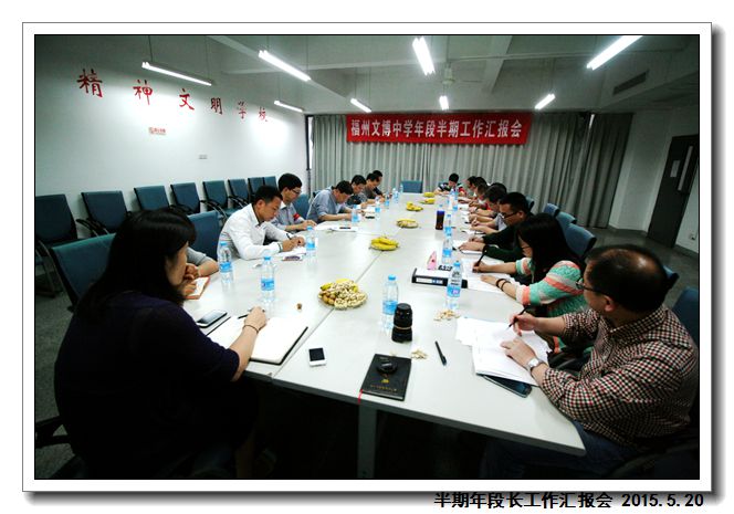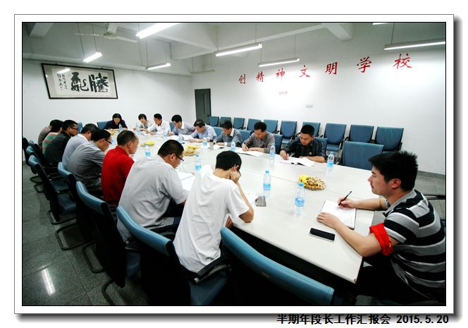 5月20日下午2﹕20我校德育处组织召开了“年段半期工作汇报会”,学校中层干部及校领导到会听取汇报,并做指导。