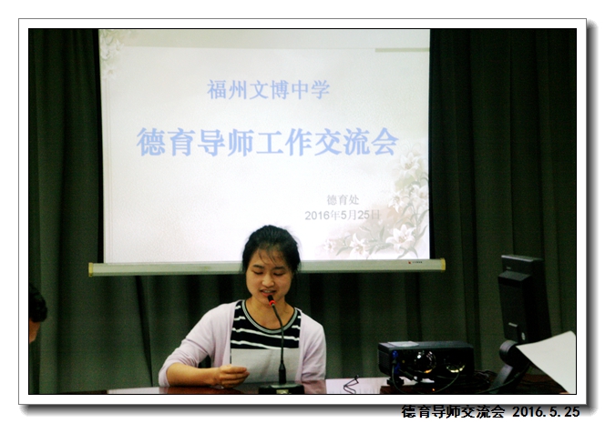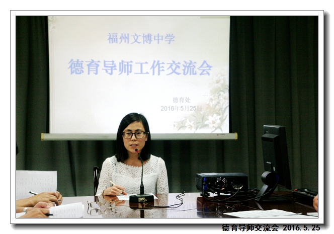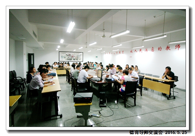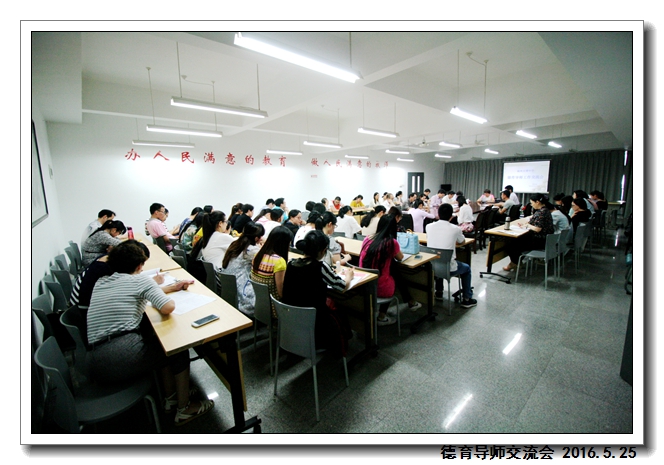 2016年5月25日下午第四节,学校德育处在五楼会议室组织召开“德育导师第二次工作交流会”。俞继圣校长,郑宝生书记,周啸翔副校长,德育处干部及75位德育导师参加了会议。会议由德育处吴燕红副主任主持。