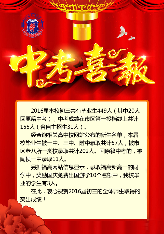 【喜报】福州文博中学2016届中考喜报
