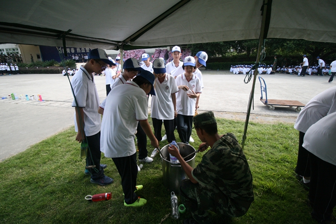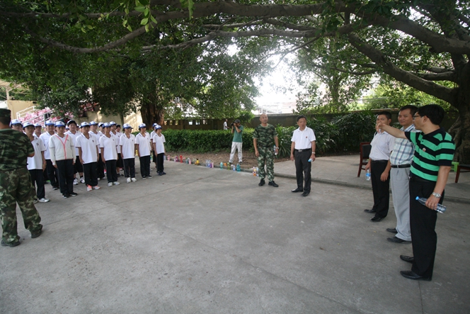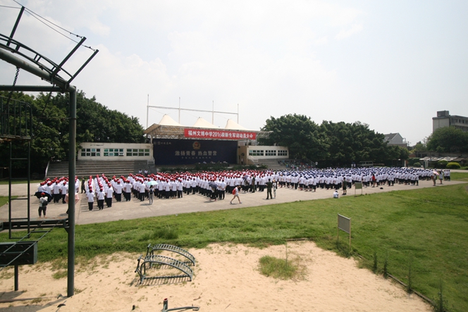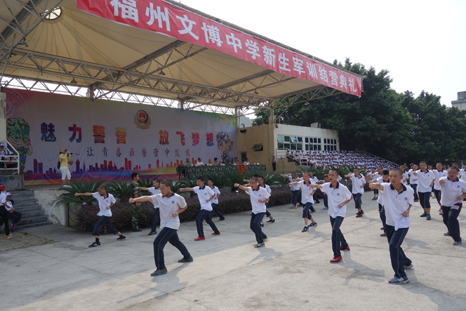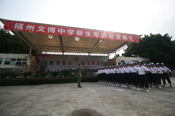 烈日炎炎,军号阵阵,这里是福建公安边防总队训练基地,8月20-26日,福州文博中学2016级初高一学子在此进行了为期七天的新生军训活动。每天清晨六点,同学们就从嘹亮的军号声中醒来,开始了一天的艰苦训练,整理内务、限时用餐、紧急集合、军姿训练、队列操练……同学们在教官的精心指导下一丝不苟地做好每一个项目,军队的优良作风熏陶了每一位文博学子……在炎炎的烈日下,严格的军事训练也让个别同学出现了不适应症,这时,年段长班主任一齐上阵,递药送水,满脸关切,不断给同学们送去关怀和鼓励,师生暖暖的情谊在冰冷严厉的军规中时时传递……