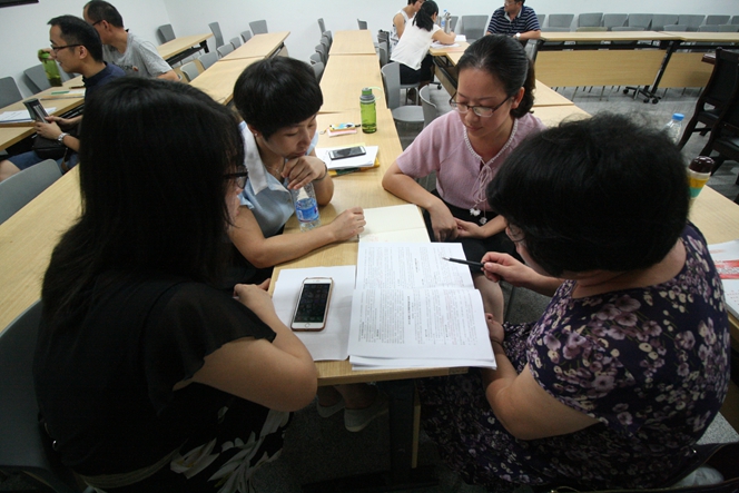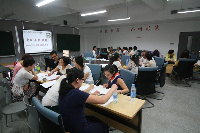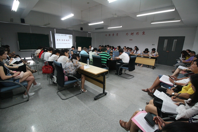 九月的南国之秋,凉爽祥和,在恬静美好的气氛中,上午8:00,2016年初高中毕业班工作研讨会开始了。初中部在三楼会议室召开,由吴勉玉主任主持;高中部在五楼会议室召开,由郑小芳主任主持。